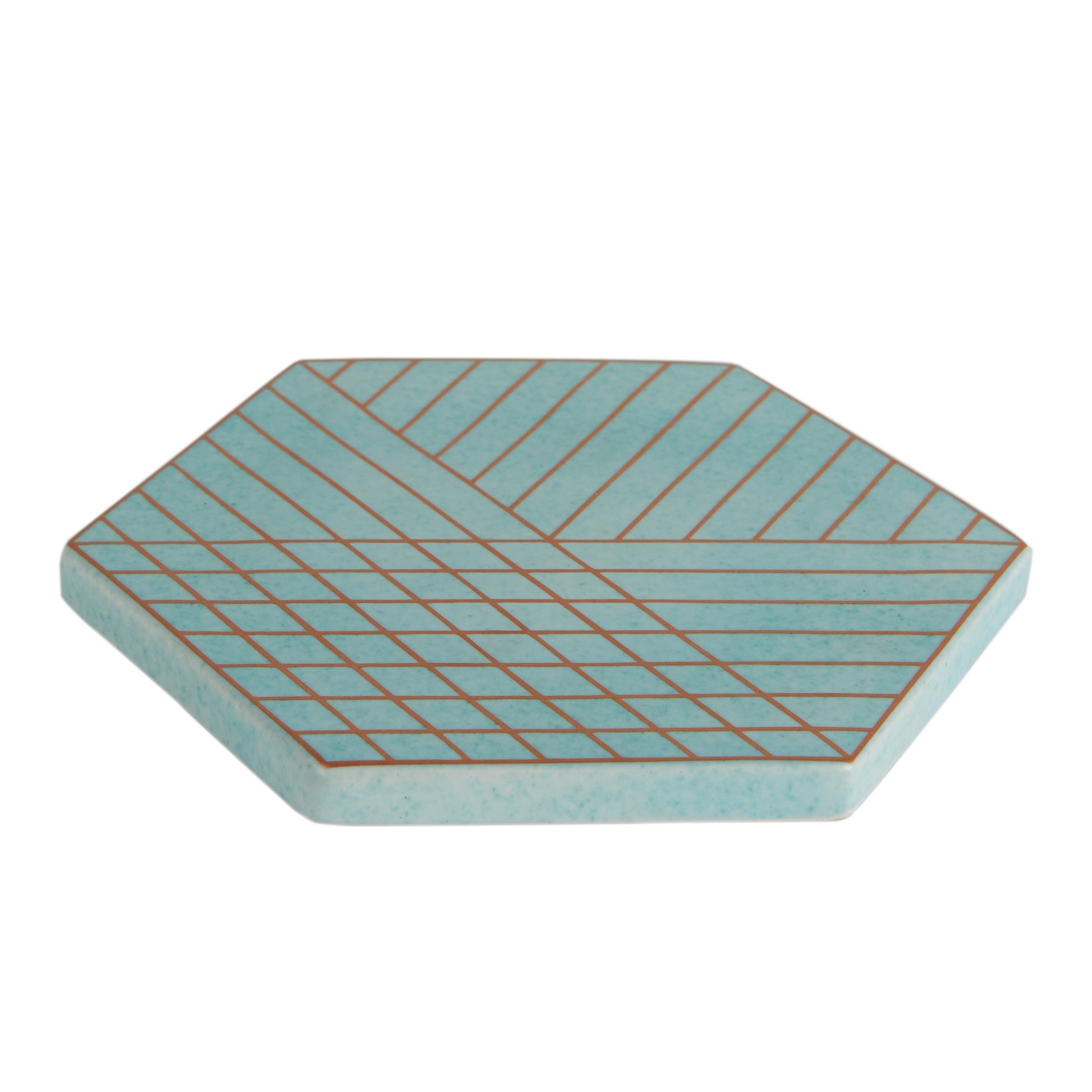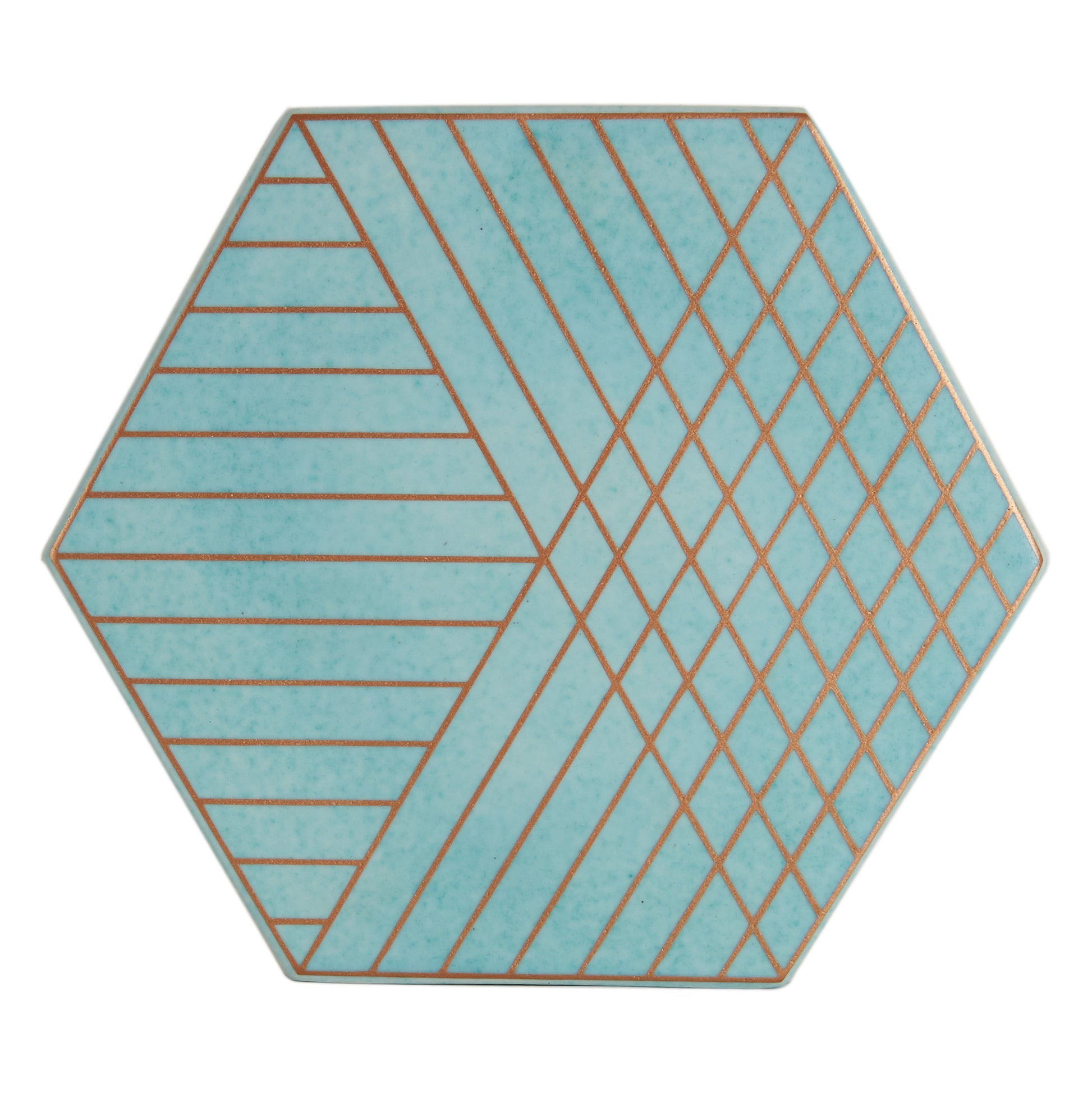 Blue Hexagon Ceramic Trivet w/ Gold Design
