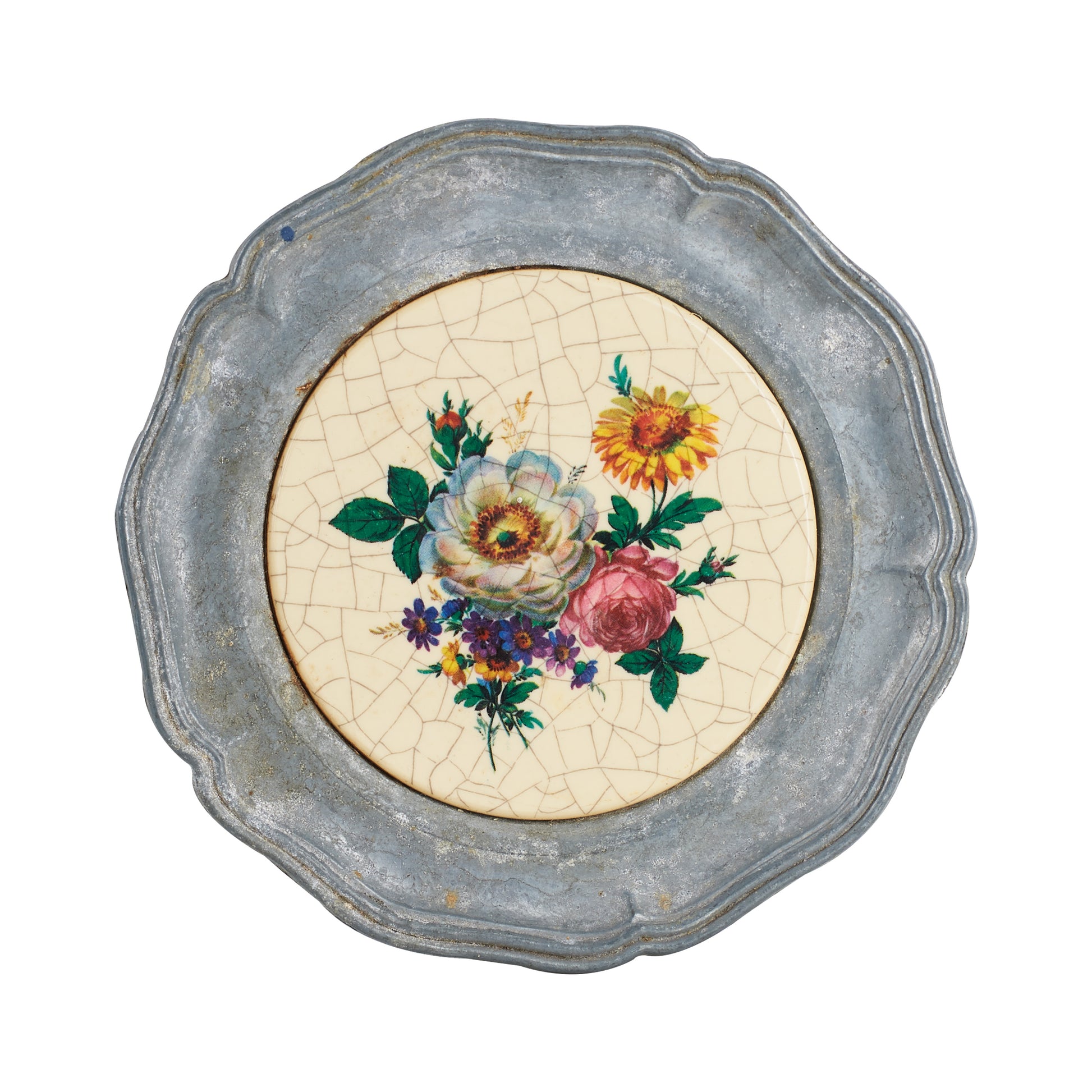 Grey Metal Coaster w/ Flower Print