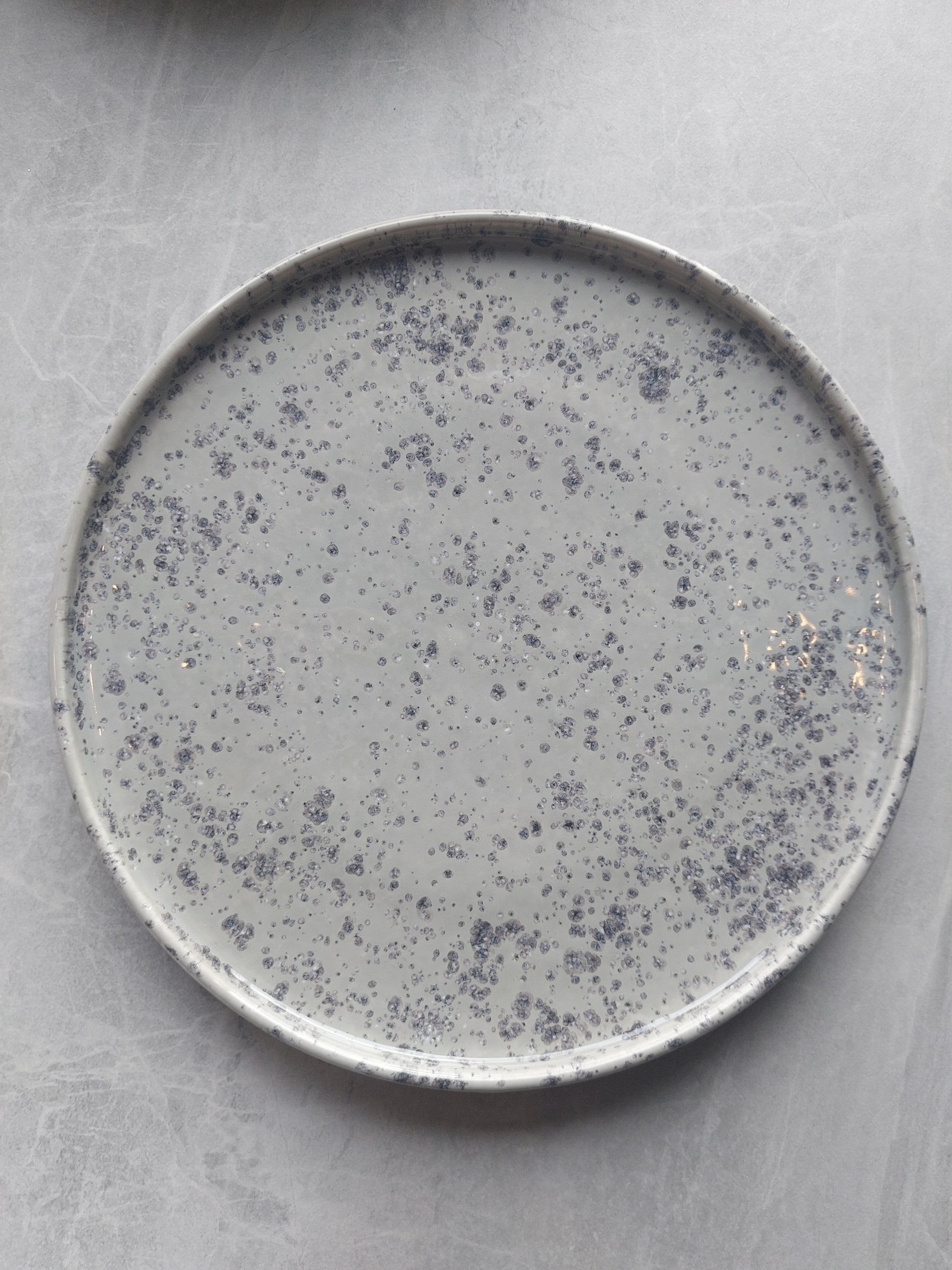 Grey Speckled Dinner Plate. Rim. 8 inch.