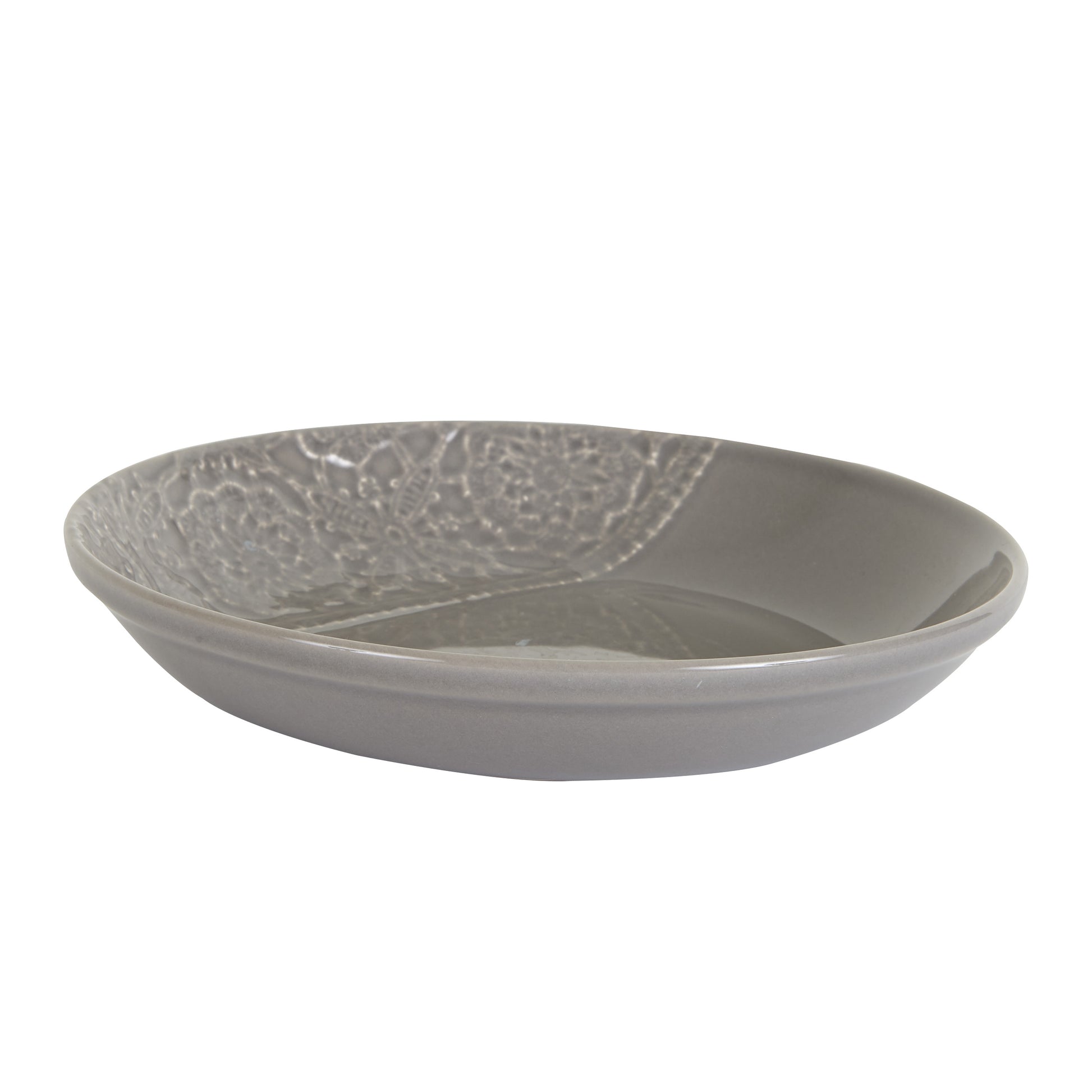 Lg Grey Bowl With Lace Pattern Print