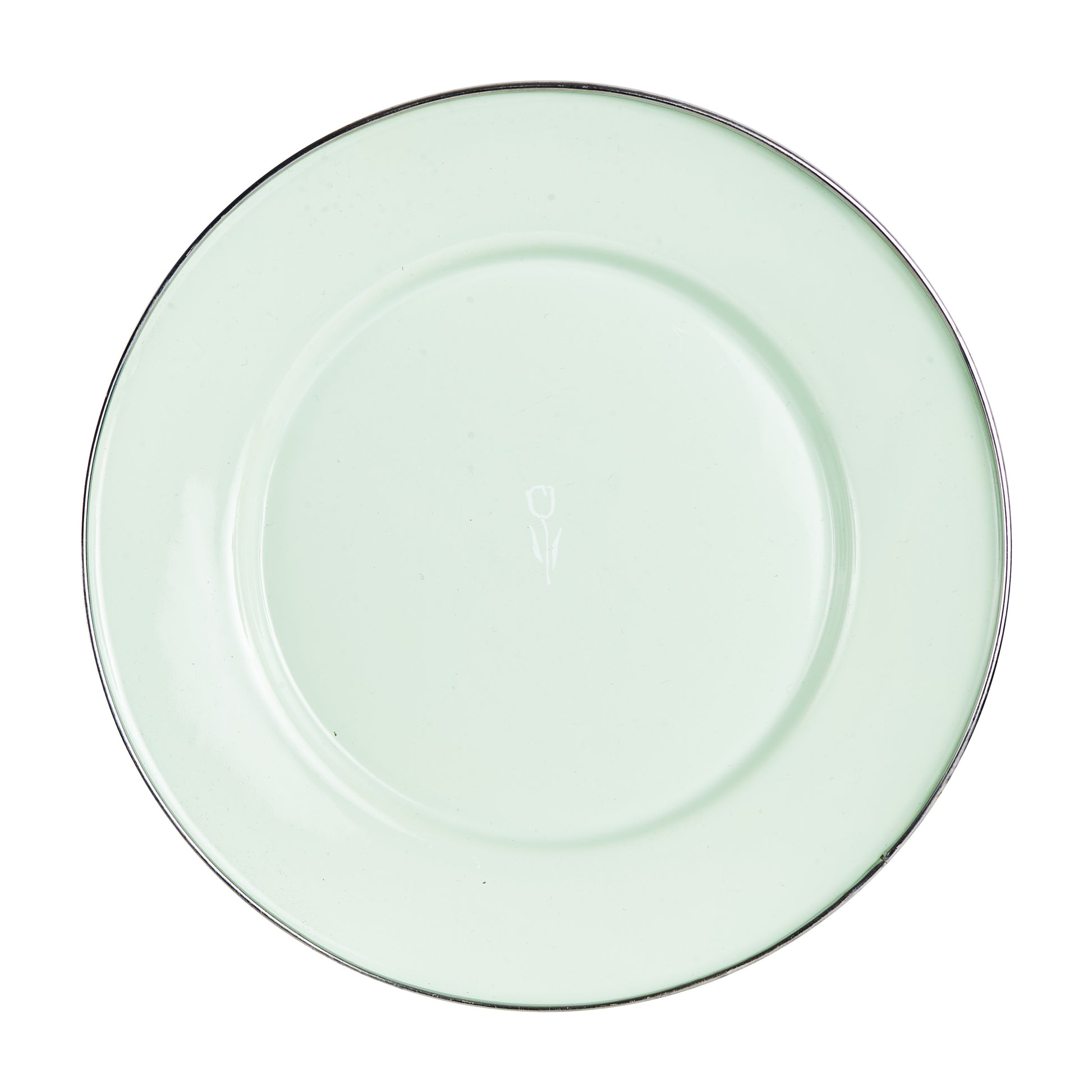 Lg Pale Green Plate With Silver Rim
