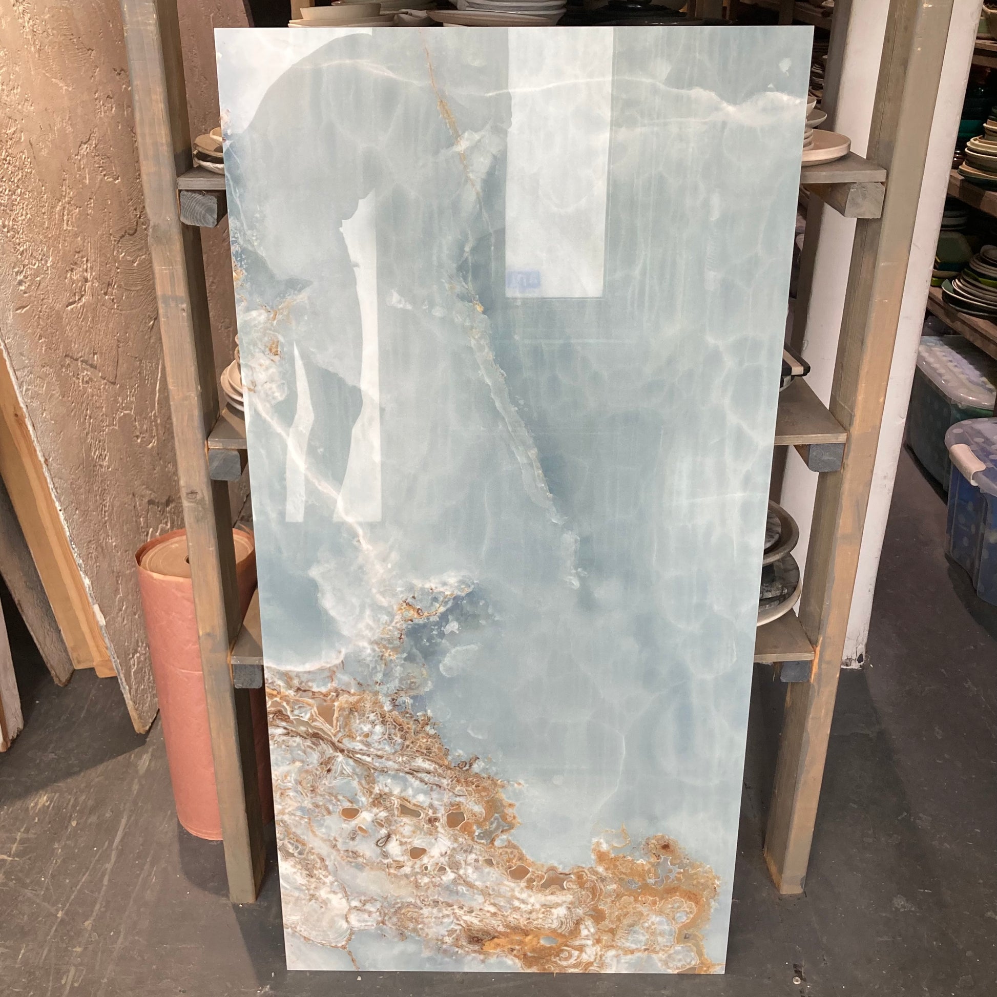Md Blue/Grey Marbled Tile w/ Burnt Orange Accents