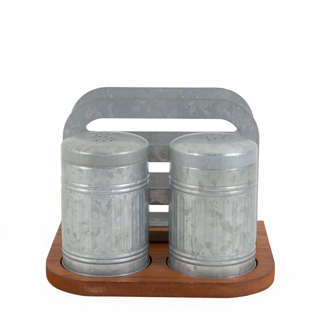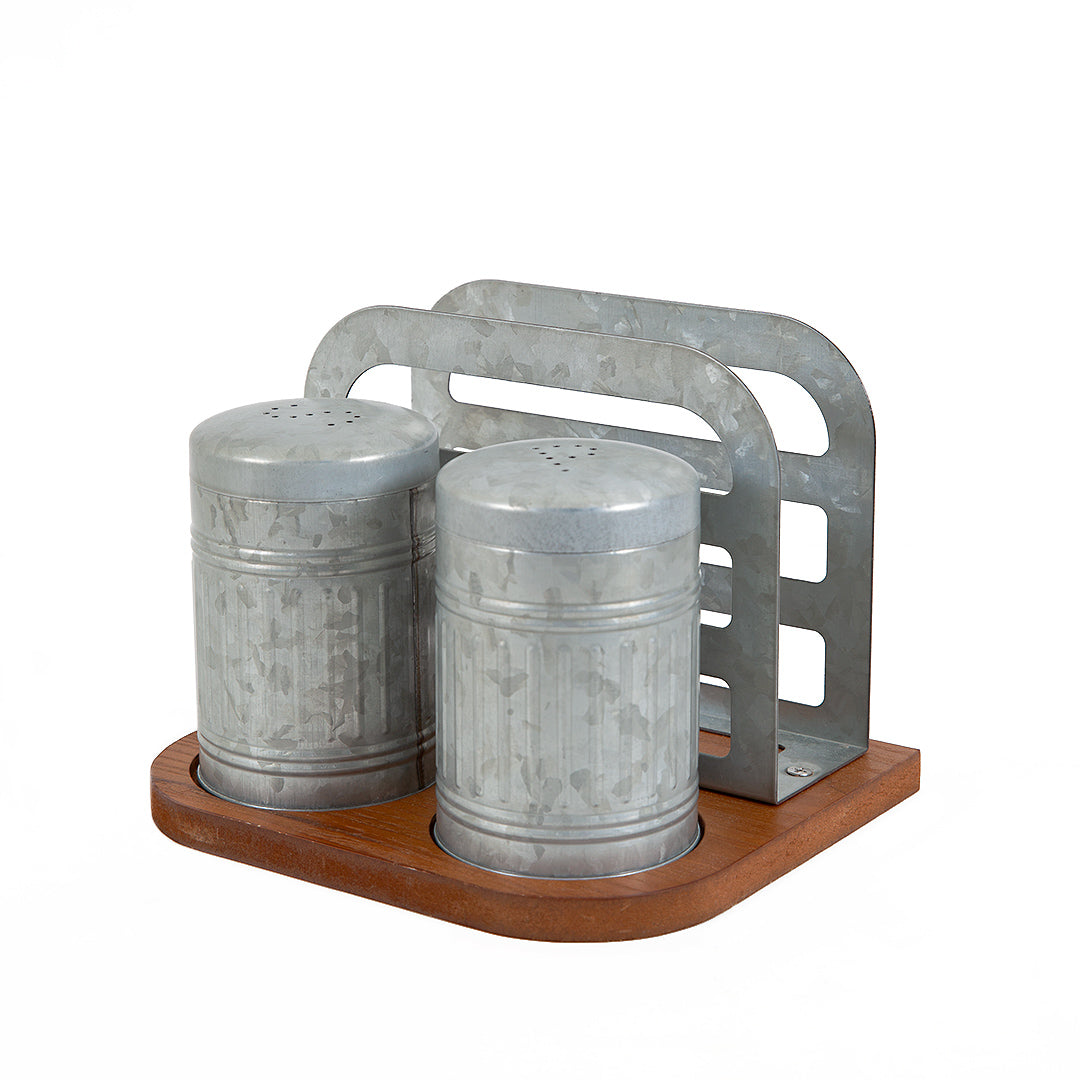 Metal Napkin Holder & Salt & Pepper Shakers with Wood Base